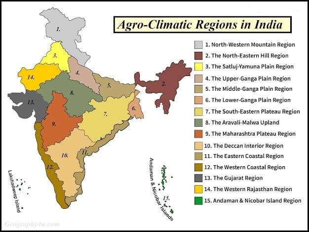 While answering the question on Agro-climatic regions the answer must be segregated in the following divisions: