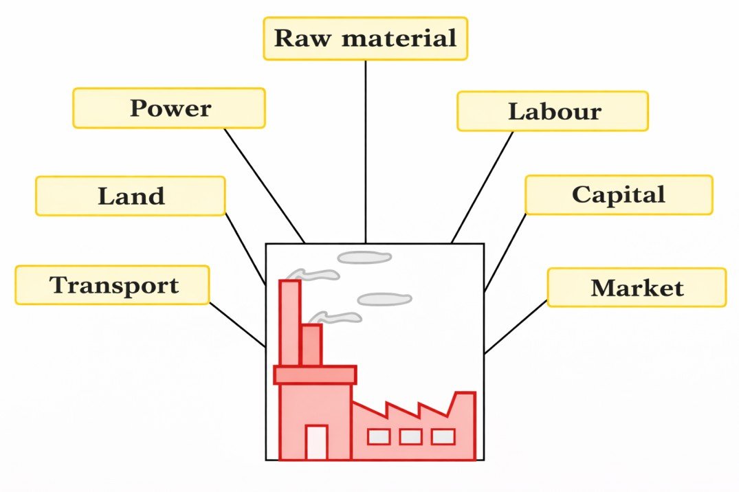 Following are the important geographical factors influencing the location of industries.