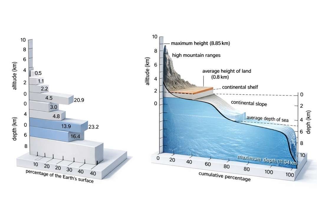 Hypsometry (from Ancient Greek (húpsos) ‘height‘ and (métron) ‘measure‘) is the measurement of the elevation and depth of features of Earth’s surface relative to mean sea level.