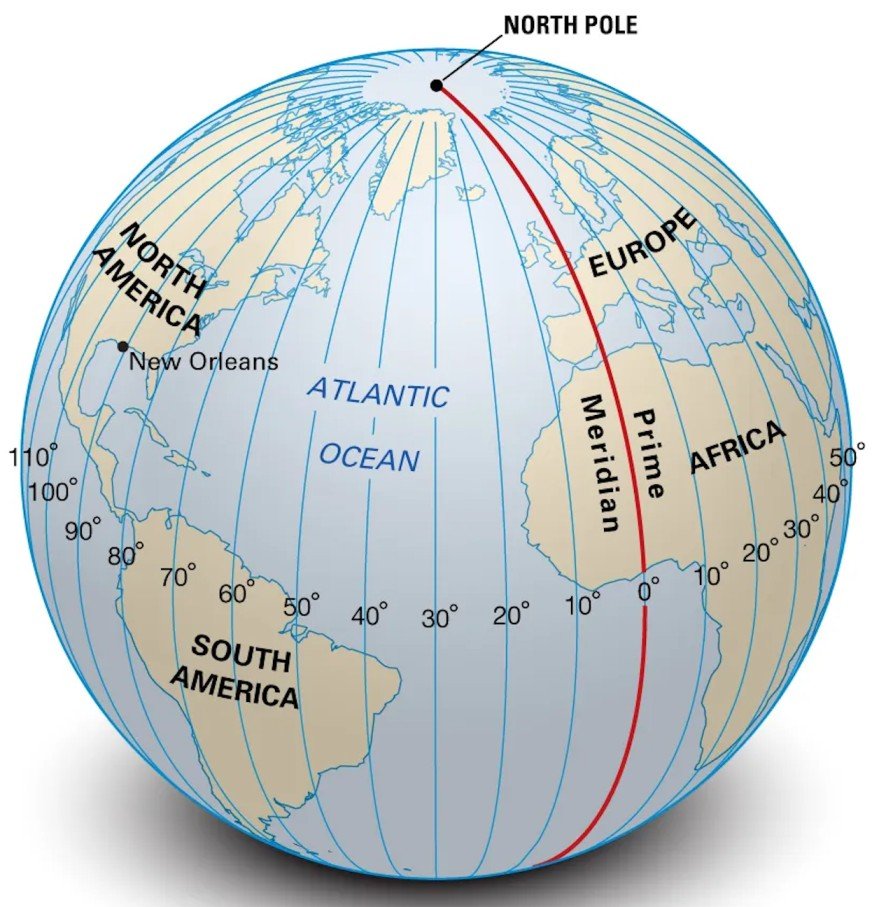 There are 360 degrees of longitude in total. The 0-degree longitude line is called the Prime Meridian, an internationally recognized reference line that divides the Earth into two equal halves: