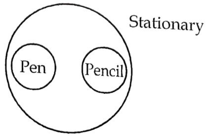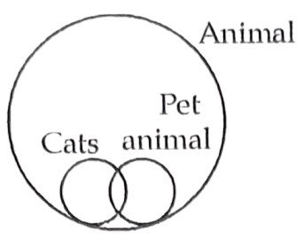 5. If two items are completely different from each other but are related to some extent but not completely to a third item, then they will be shown by diagram as given below.