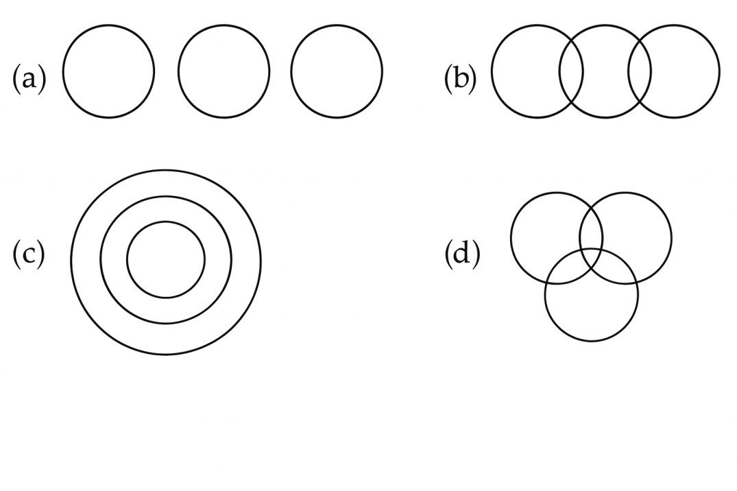 (b) Giving answers of the question from the given mixed diagram of two or more figures, There are some basic types of Venn diagram that shows different relationships.