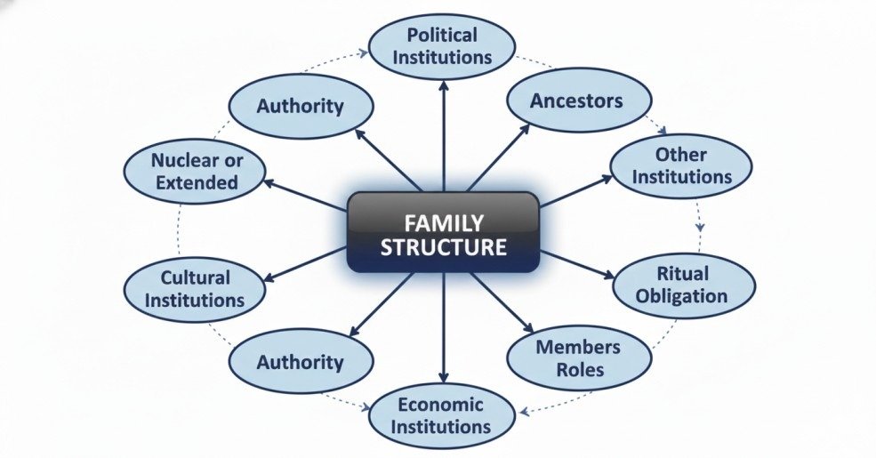 Kinship determines rights and obligations, regulates production, consumption and authority, enforces marriage taboos, and governs ritual practices.