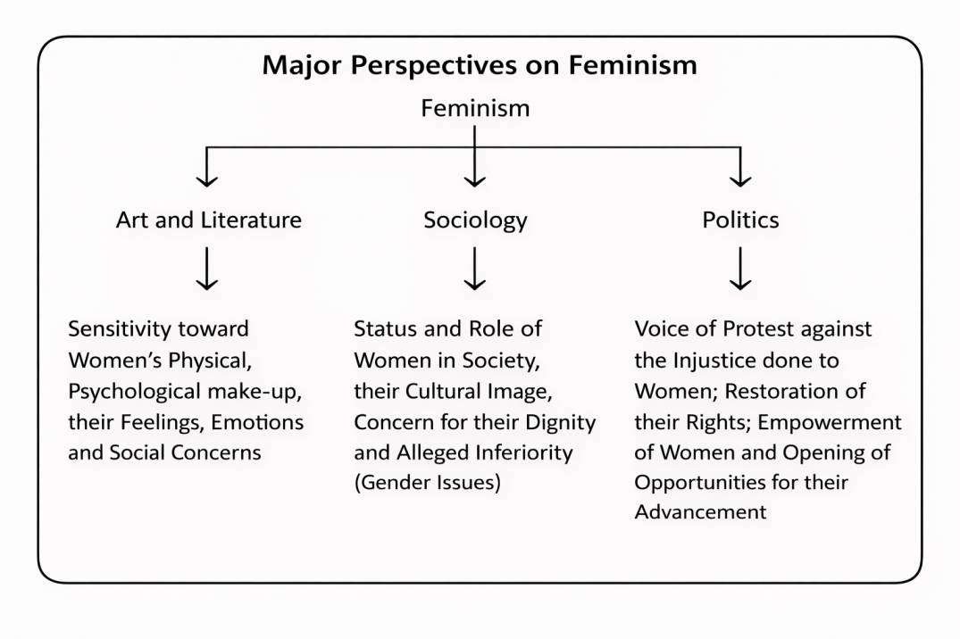 • In social and political thought, the study of feminism generally combines perspectives from three major fields: